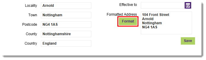 When creating a new address for a contact or asset, it is possible to control the appearance of that address using the Formatted Address field and corresponding Format function, located on the address entry window. This function applies the principles of the address element structure, as defined within the PAF standard, ensuring that concatenated address fields appear consistently throughout Civica Cx Housing, both in comma-separated and multi-line formats. The standardised layout will be displayed in the Formatted Address field, and can be adjusted by the end user, as required, simply by applying any positional changes directly therein. Clicking on the Format option will always re-apply the standardised convention, overriding any changes that have been introduced locally.